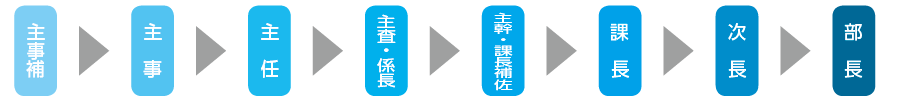 一般的な昇任の例は次のとおりで、昇任するにあたり「昇任試験」を導入している市町村もあります。